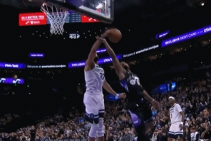 挺身而出!爱德华兹防守端干扰对方三分 反击折叠暴扣2+1打回悬念