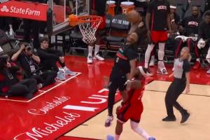 差点摔倒!卡斯尔快攻大风车暴扣表演 奥科吉上来碰了一下犯规