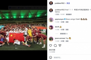 体育资讯1月21日讯 于大宝更新社媒,庆祝中国U23男足闯进U23亚洲杯决赛。