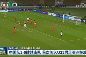 体育资讯01月21日讯 今日中央电视台《新闻联播》节目中,播报了U23国足击败越南U23,首次闯入U23亚洲杯决赛的新闻。