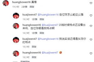 黄博文评论蒯纪闻社媒:真棒,蒯纪闻回应:定位球怎么能这么强