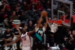 起飞了!凯莱布·乐福反击直接抛传 夏普蓄力起飞双手空接炸扣