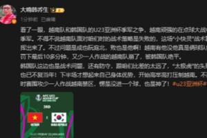体育资讯01月24日讯 U23亚洲杯季军赛,越南U23通过点球大战战胜韩国U23,夺得季军。赛后,韩乔生在微博对比赛进行了点评。