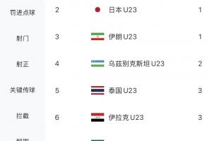 本届U23亚洲杯此前5场比赛90分钟和一场加时赛共480分钟零丢球,继续保持本届唯一零丢球球队的纪录。