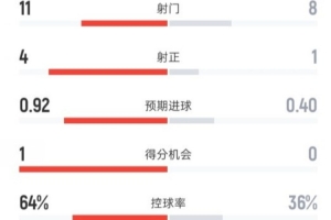 曼城2-0狼队全场数据:射门11-8,射正4-1,控球率64%-36%