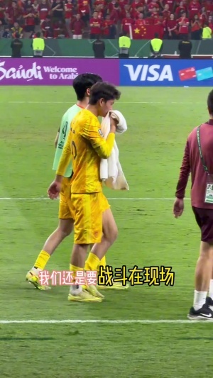 赛后U23国足门将李昊拿着毛巾,掩面落泪。