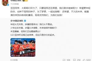 “中国足球队”官博写道:“豆豆同学,大哥哥们尽力了,只要冠军还在那里,我们就会继续努力!希望更年轻的你,也种下冠军的种子,为了梦想,一起加油哦! 还希望,不久的未来,能邀请你来到训练场和赛场,现场支持我们,为我们加油!”