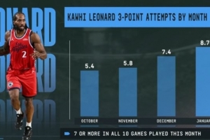 说到做到!小卡本赛季三分出手数逐月提升 近10场每场甩至少7个