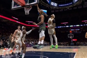 翻江倒海!戈贝尔轻松揽下前场板 随后单臂暴扣打进还要加罚