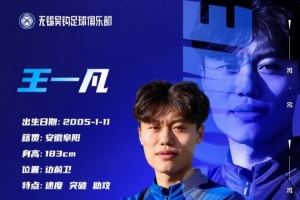 王一凡租借加盟无锡吴钩足球俱乐部,租借期至2026年12月31日。希望王一凡在租借期间刻苦训练,通过更多的比赛累积经验。