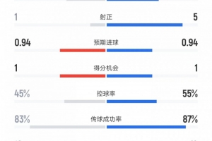 多特vs国米全场数据:射门9比12、射正1比5、控球率45%比55%