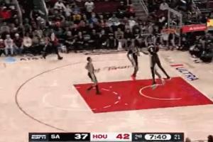 动作太大了!文班假动作突破 申京连拉带拽 阿门最后也上手犯规