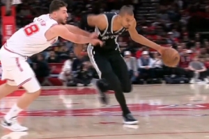 动作太大了!文班假动作突破 申京连拉带拽 阿门最后也上手犯规