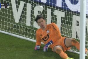 直接懵了!里尔门将遭登贝莱神仙吊射,躺球门里思考人生目瞪口呆
