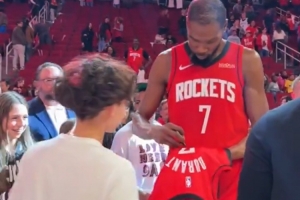 优质偶像!杜兰特赛后与对手、队友、球迷互动 迟迟未离开