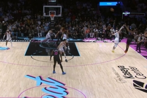 额度留到关键时刻!维金斯右侧弧顶关键三分命中帮助热火反超雷霆