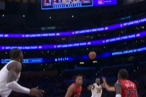 临时改主意!詹姆斯弧顶撤步假投真传助攻艾顿暴扣